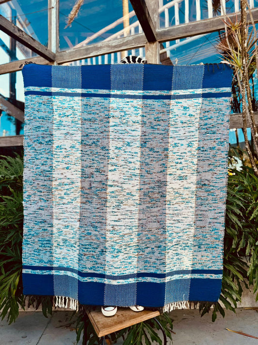 Tapete em Malha Moldura Azul Mesclado 1,50x1,50m