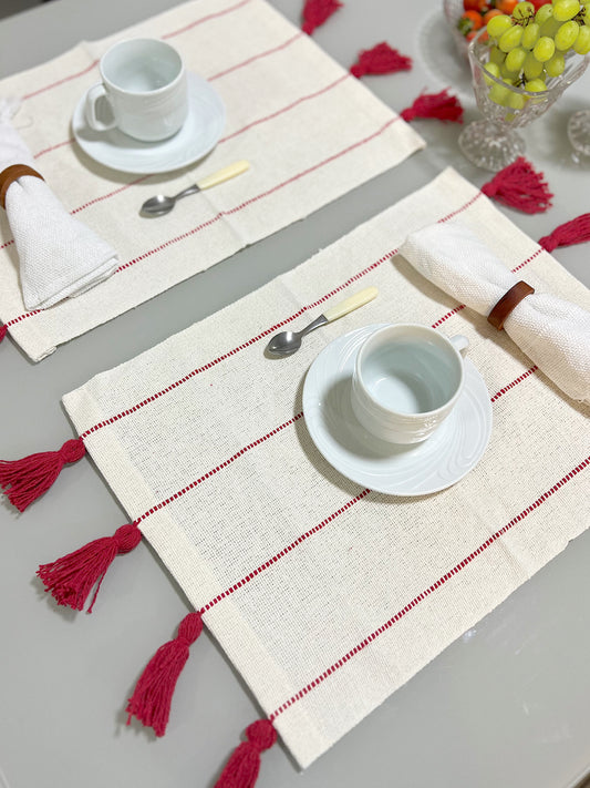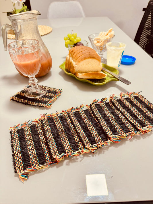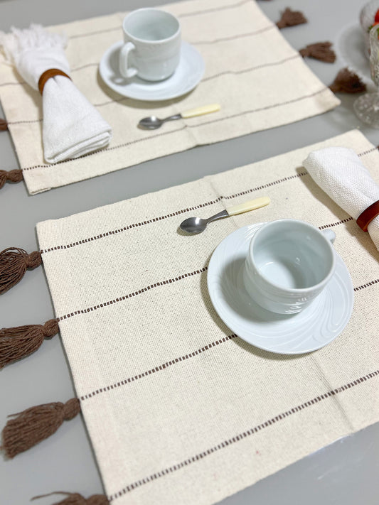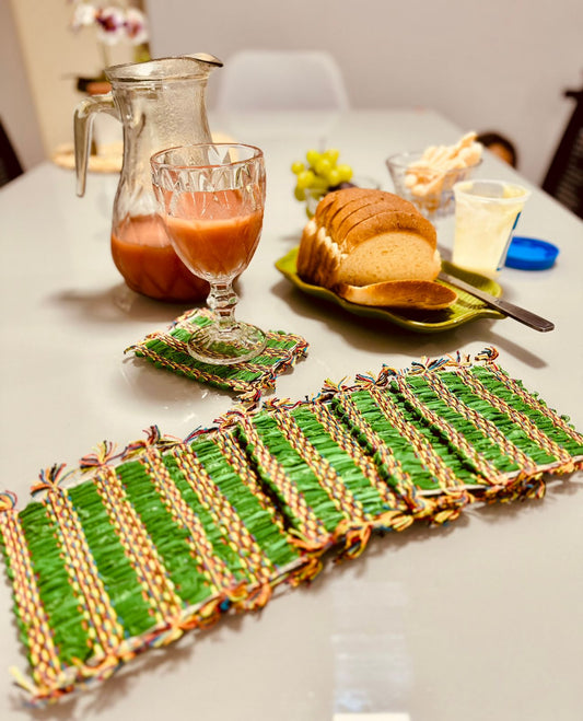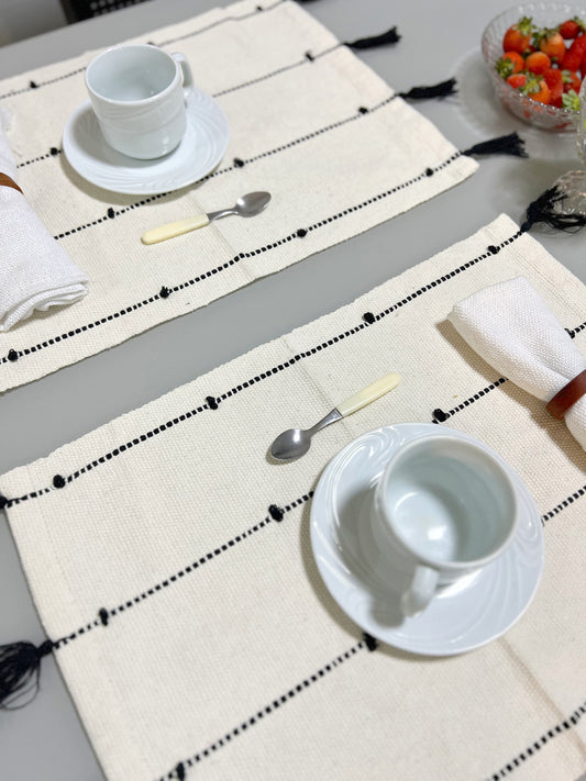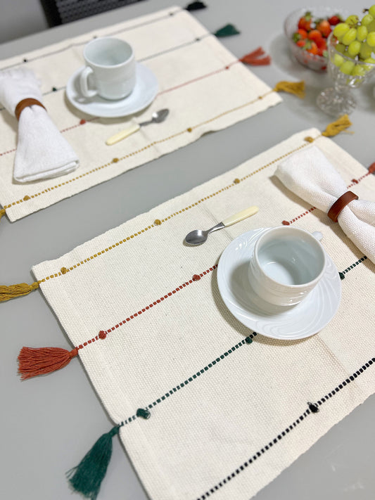 Lugar Americano Algodão com Pompom Mostarda, Terra, Verde e Preto