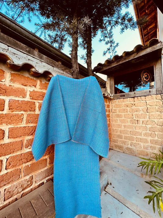 Jogo de Passadeira com 3 Peças Malha Azul Sem Franja