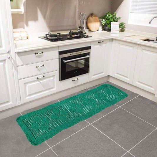 Caminho de Mesa / Passadeira Crochê Retangular Verde 128x40cm