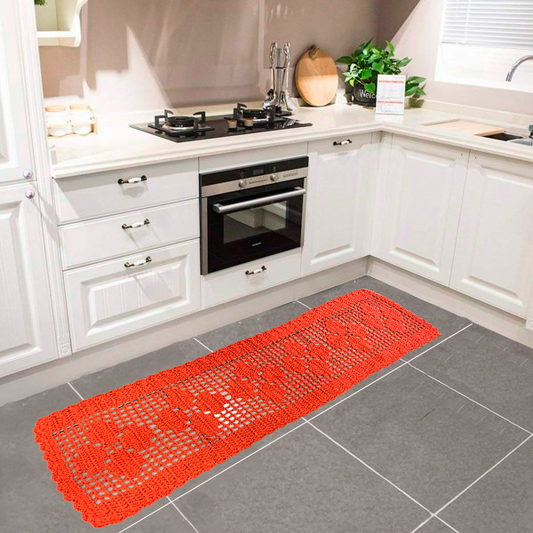 Caminho de Mesa / Passadeira Crochê Retangular Laranja 128x40cm