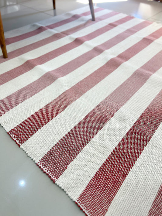 Tapete em Linha Listrado Terracota e Cru 1,50x1,50m