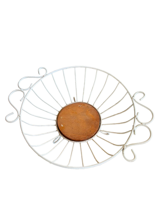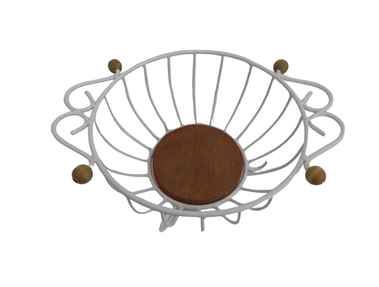 Fruteira Redonda Rústica Em Ferro E Madeira Branca