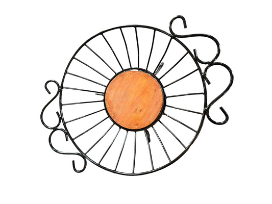 Fruteira Redonda Grande Rústica Em Ferro E Madeira Preta