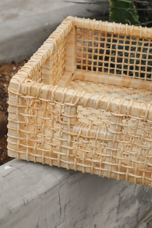 Baú Organizador Deitado em Palha de Milho Aberto G