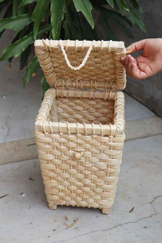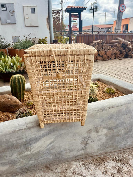 Baú Organizador / Cesto de Roupa em Pé em Palha de Milho Fechado P