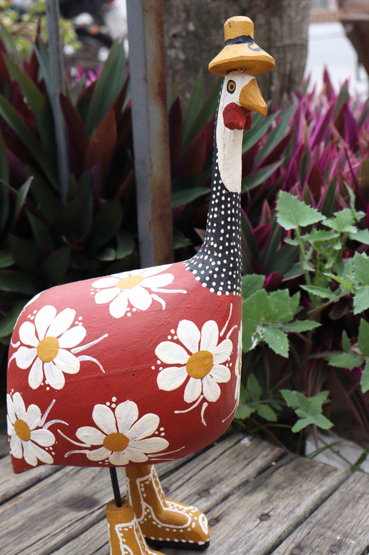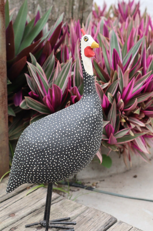Galinha D'Angola Artesanal Em Madeira e Pé Ferro