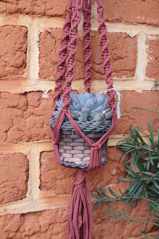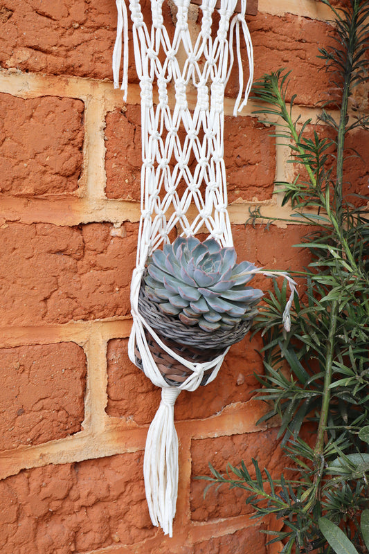 Suporte de Planta em Macramê Malha Um Vaso Terracota