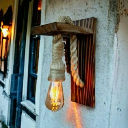Luminária Arandela Retrô de Madeira e Corda Sisal Rustica