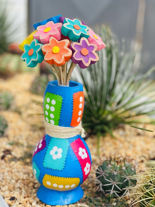 Galinha Patchwork Artesanal Em Madeira e Pé Ferro