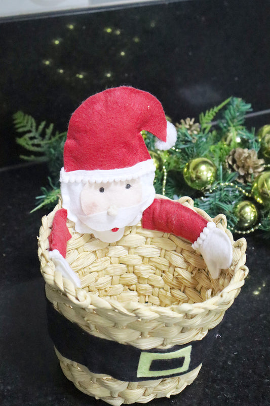 Cachepô Cesta de Papai Noel de Natal em Palha