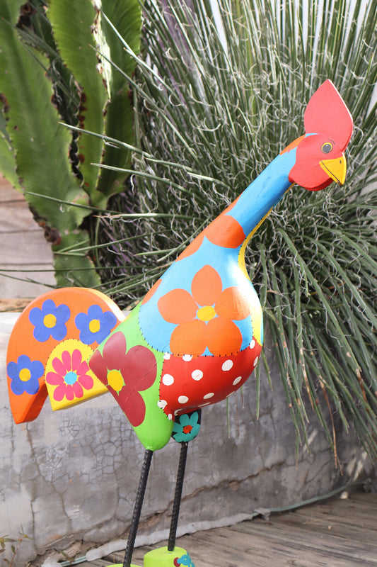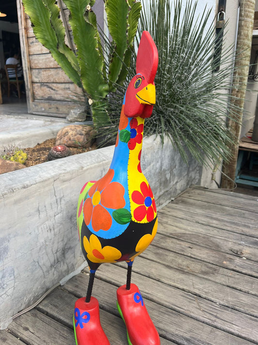 Galinha de Sapatos Vermelha em Madeira