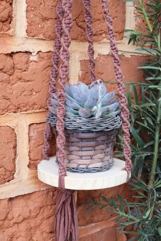 Suporte de Planta em Macramê Malha Duplo Terracota