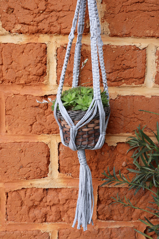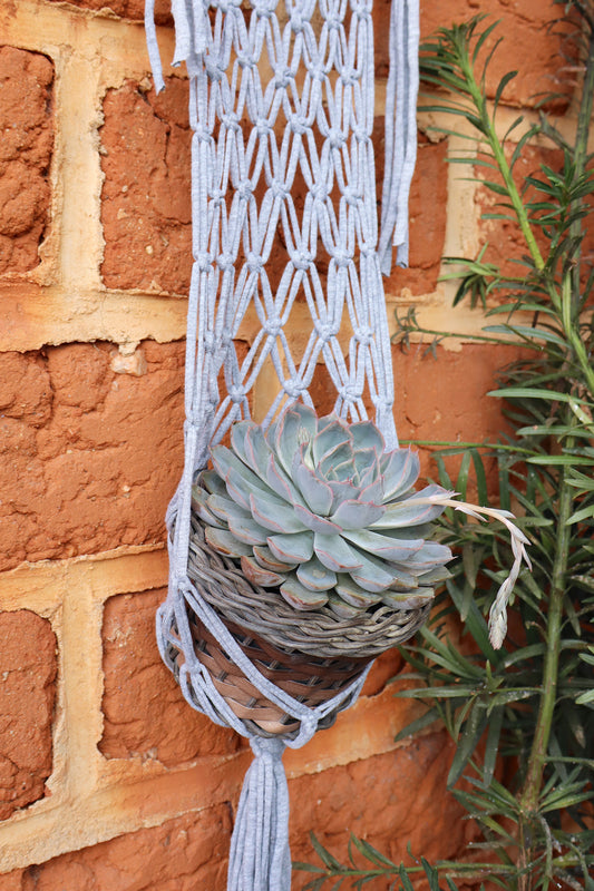 Suporte de Planta em Macramê Malha Um Vaso Cinza