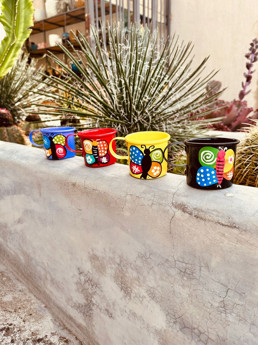 Kit 4 Canecas Alumínio Pintada Amarela Borboleta