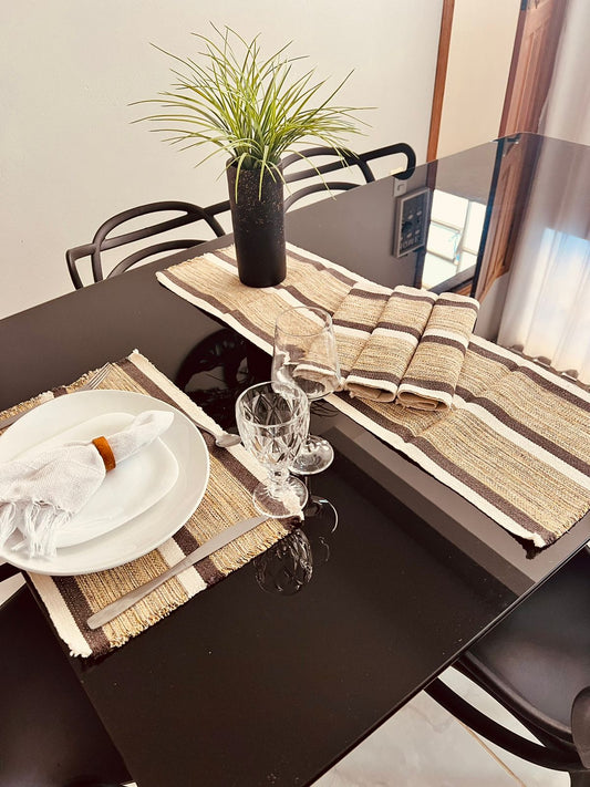 Jogo Americano Comum Marrom E Palha 7 Peças