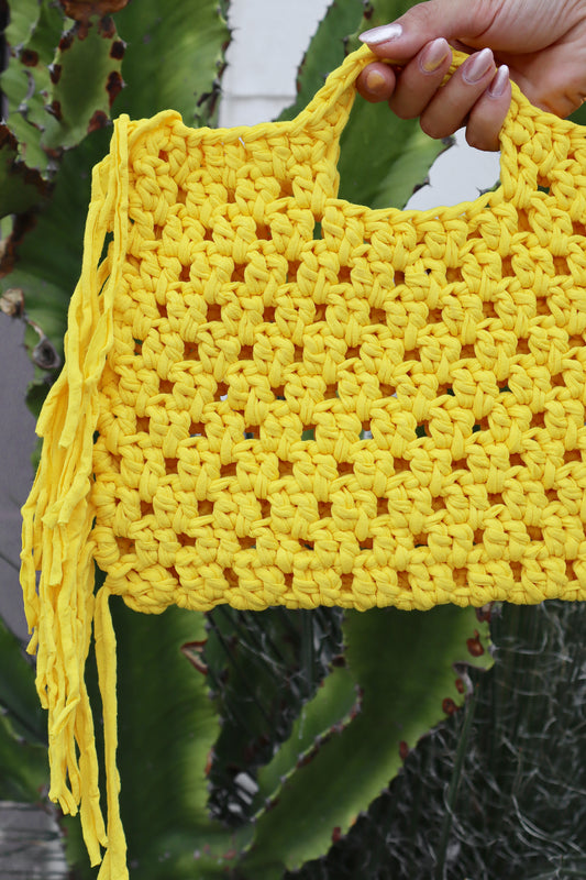 Bolsa de Mão em Crochê com Franja Vintage Minimalista Amarela