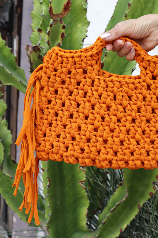 Bolsa de Mão em Crochê com Franja Vintage Minimalista Laranja