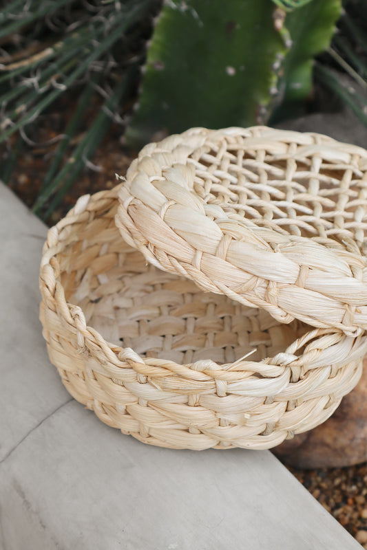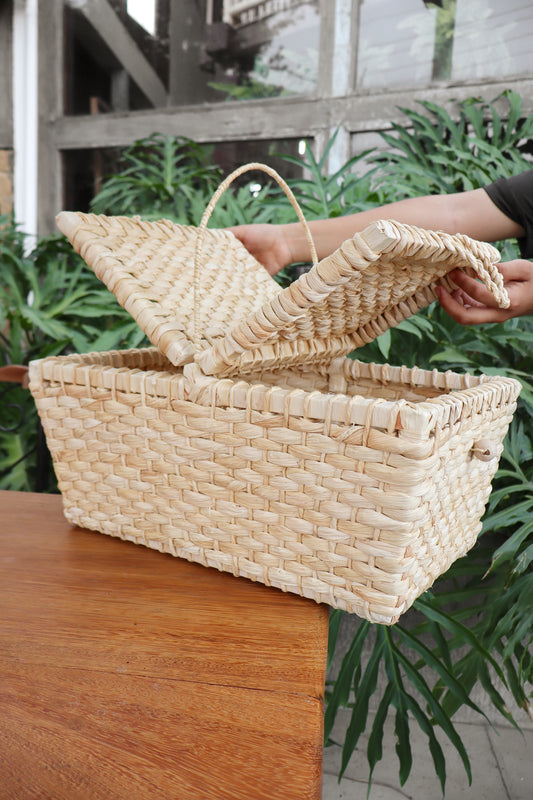 Cesta Piquenique em Palha de Milho com Trama Fechada G