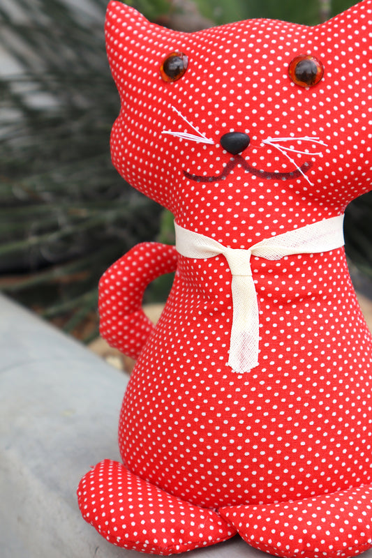Peso de Porta Gatinho Sentado Poá Vermelho