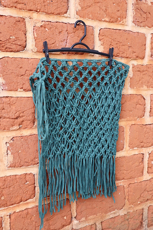 Saída de Praia Crochê Macramê Curta Luxo em Malha Verde Musgo