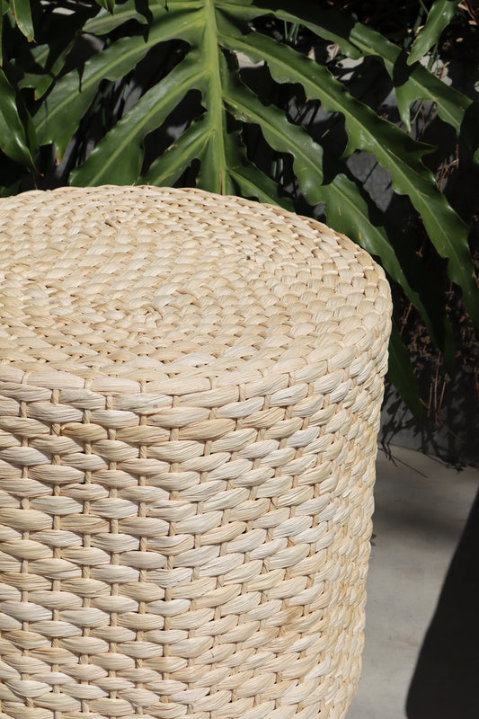 Baú Organizador / Cesto de Roupa em Pé em Palha de Milho Fechado P