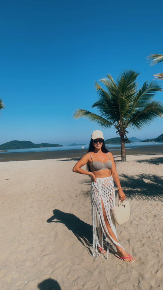 Saída de Praia Crochê Macramê Luxo em Malha Cru com Lurex Dourado