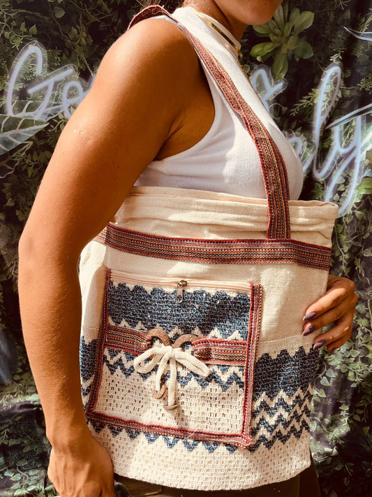 Bolsa de Palha Simples Peruana + Toalha Canga Dupla Face Floral Azul