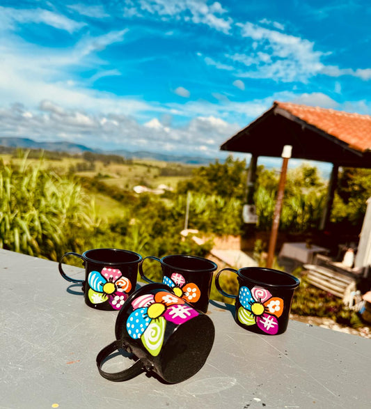 Kit 4 Canecas Alumínio Pintada Amarela Flores