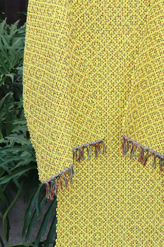 Jogo de Passadeira com 3 Peças Malha Mesclado Amarelo Sem Franja
