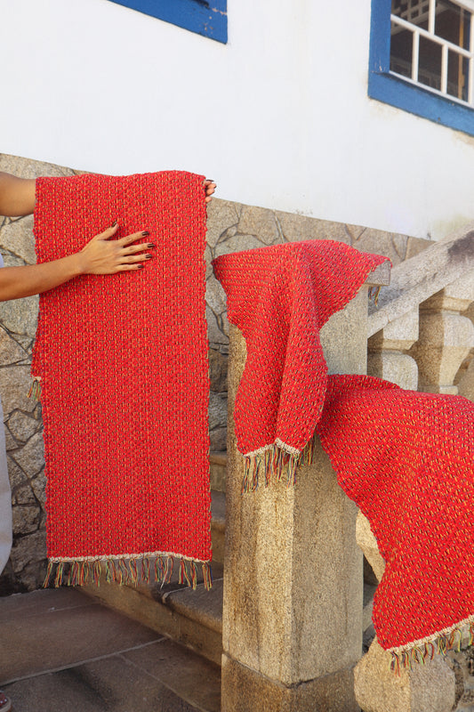 Jogo de Passadeira com 3 Peças Malha Vermelho
