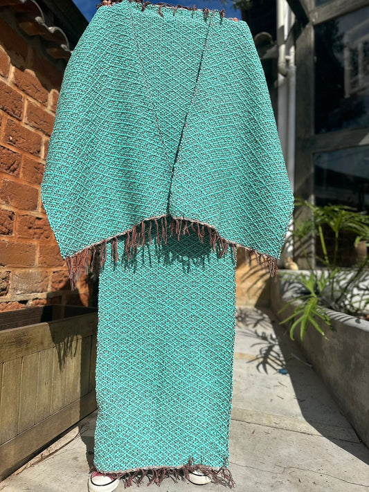 Jogo de Passadeira com 3 Peças Malha Azul Mesclado
