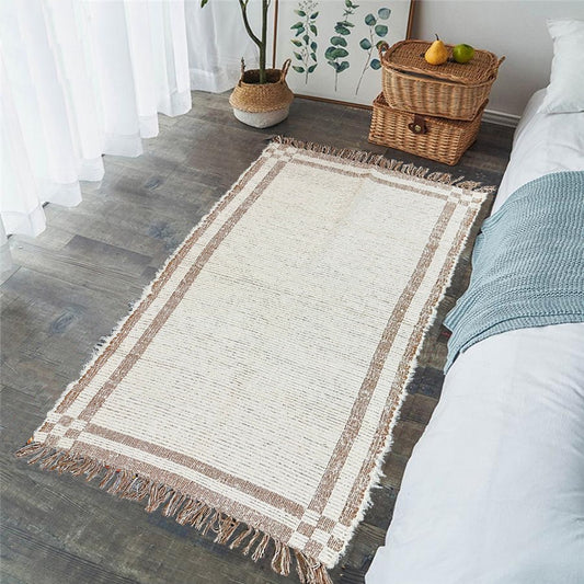 Tapete Médio Felpudo Listra Fina Bege 0,80x1,50m