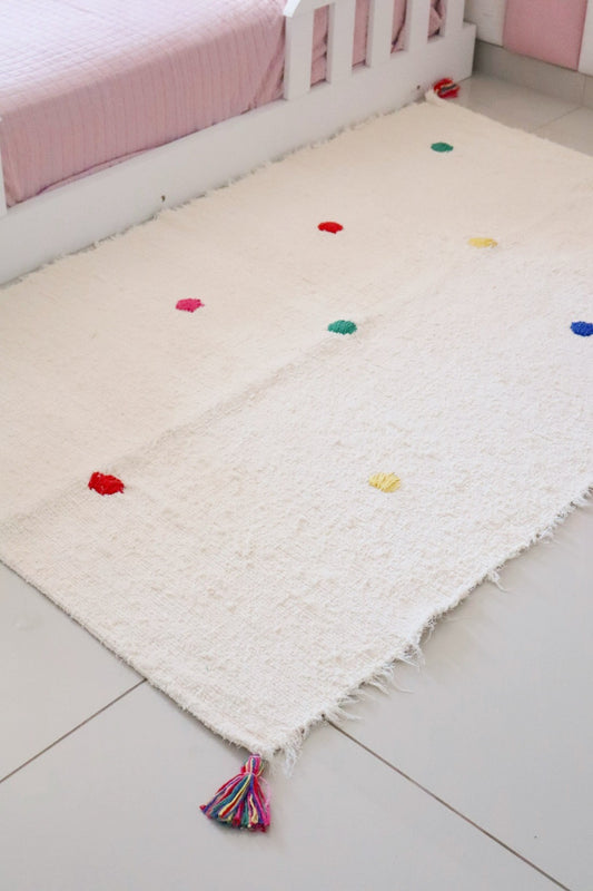 Tapete Médio Algodão Bordado Pompom Bolinhas Coloridas 1,00x1,50m