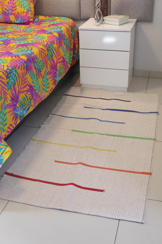Tapete Médio Linha Capri Cru com Listras Coloridas 0,80x1,50m