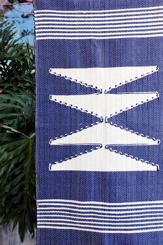 Tapete Médio Malha Azul Escuro com Bico Cru Sem Franja