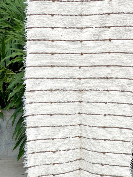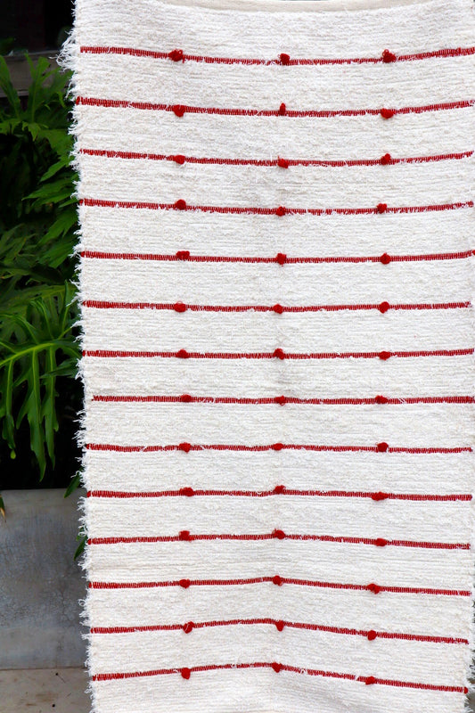 Tapete Médio Algodão Puxadinho Pompom Bege 0,80x1,50m