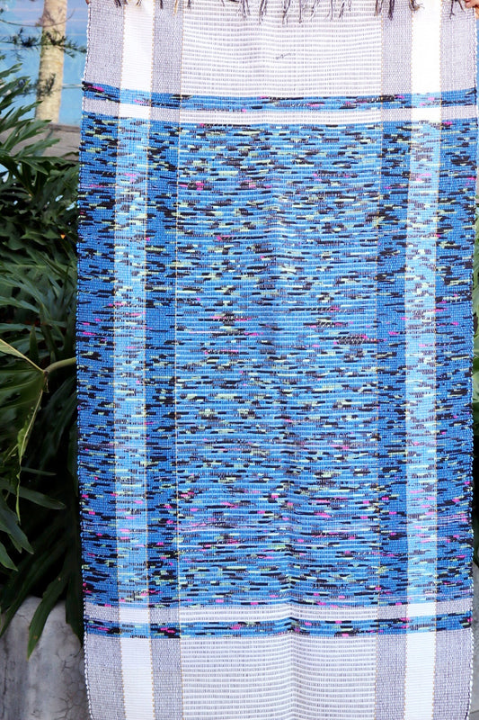 Tapete Médio em Malha Moldura Azul Mesclado