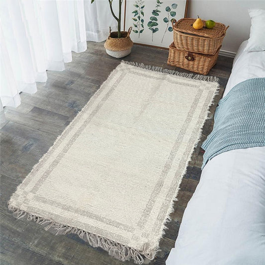 Tapete Médio Algodão Felpudo Grid Bege 0,80x1,50m