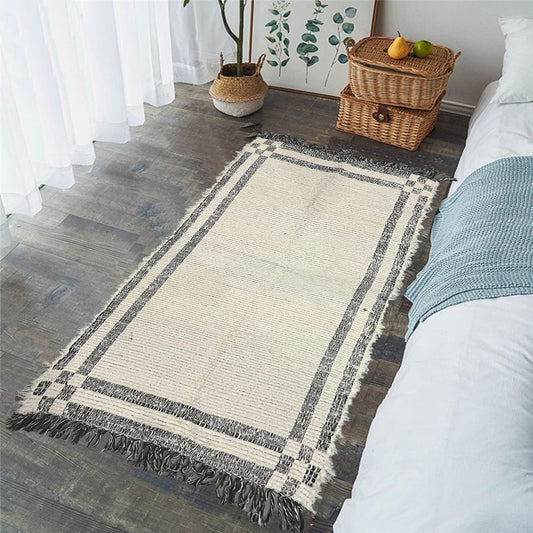Tapete Médio Dupla Face Felpudo Preto/ Cru Sem Franja 0,80x1,40m