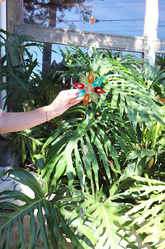 Móbile Fio de Luz Espelhado Estrela Colorido