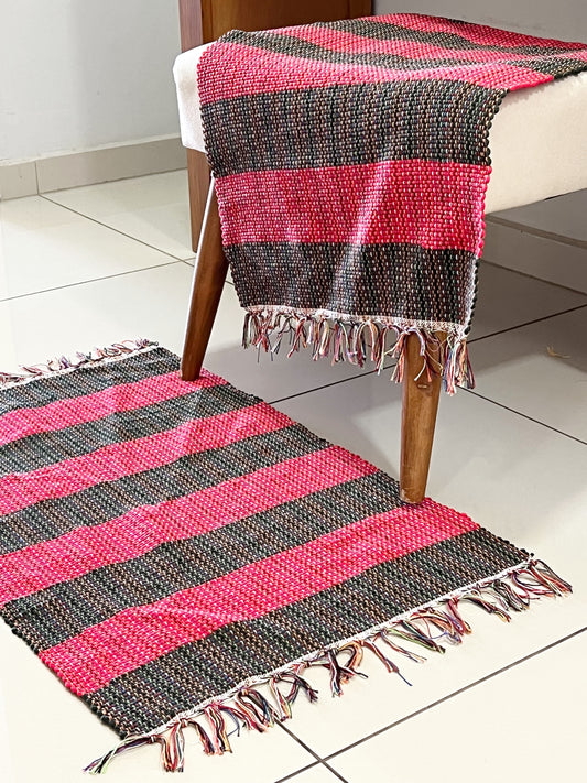 Par de Tapete de Malha Listrado Vermelho e Verde Natal