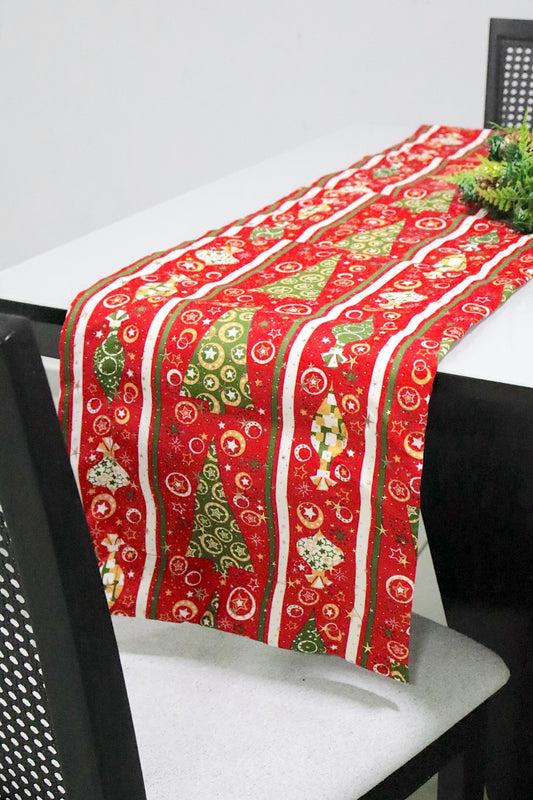 Caminho de Mesa Dupla Face Juta / Tecido Árvores Vermelho Natal