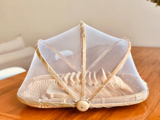 Cesta Porta Pão e Bolo Bambu com Cobertura Retrátil P