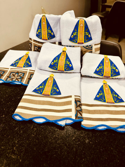 Kit 7 Panos de Prato Decorados - Semaninha Nossa Senhora Aparecida