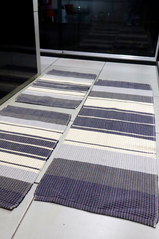 Jogo de Passadeira Linha Listrado Azul e Cru