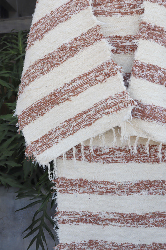 Jogo de Passadeira Felpudo Bege Listrado Mini