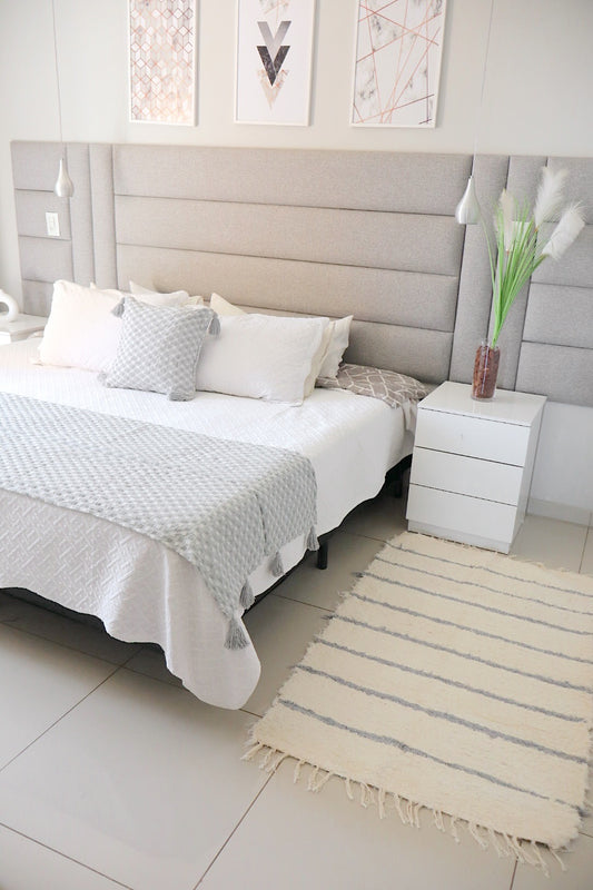 Kit Decoração Cinza (Capa de Almofada Safira + Peseira Safira + Tapete Médio Listra Fina)