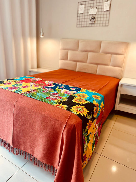Manta para Sofá / Peseira Escama Boho Terracota 1,20mx1,80m