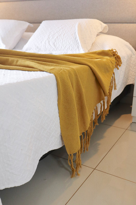 Manta para Sofá/Peseira em Chenille Mostarda 1,20x2,20m